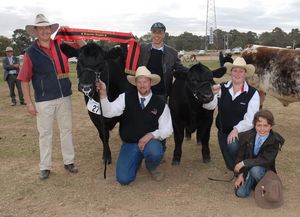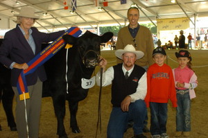 ![]() Canberra Royal Show 2011 Supreme Champion Beef Female with Ashley Morris, Mrs leonie Crompton, Theo and Angus Onisforou and Tim Lord. |